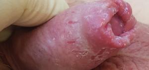 В патологический процесс чаще вовлекается и крайняя плоть.