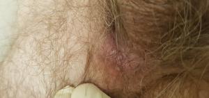 После первичного заражения, а также при каждом рецидиве на лобке появляются высыпания.