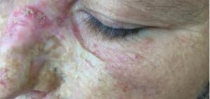 Высыпания возле носа постоянно травмируются.
