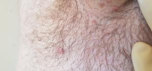 Локальный механизм, это когда аллерген непосредственно контактирует с кожей, в нашем случае лобка.