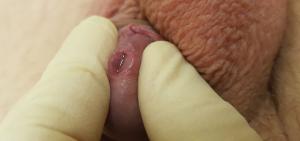 Он вводится через наружное отверстие мочеиспускательного канала.